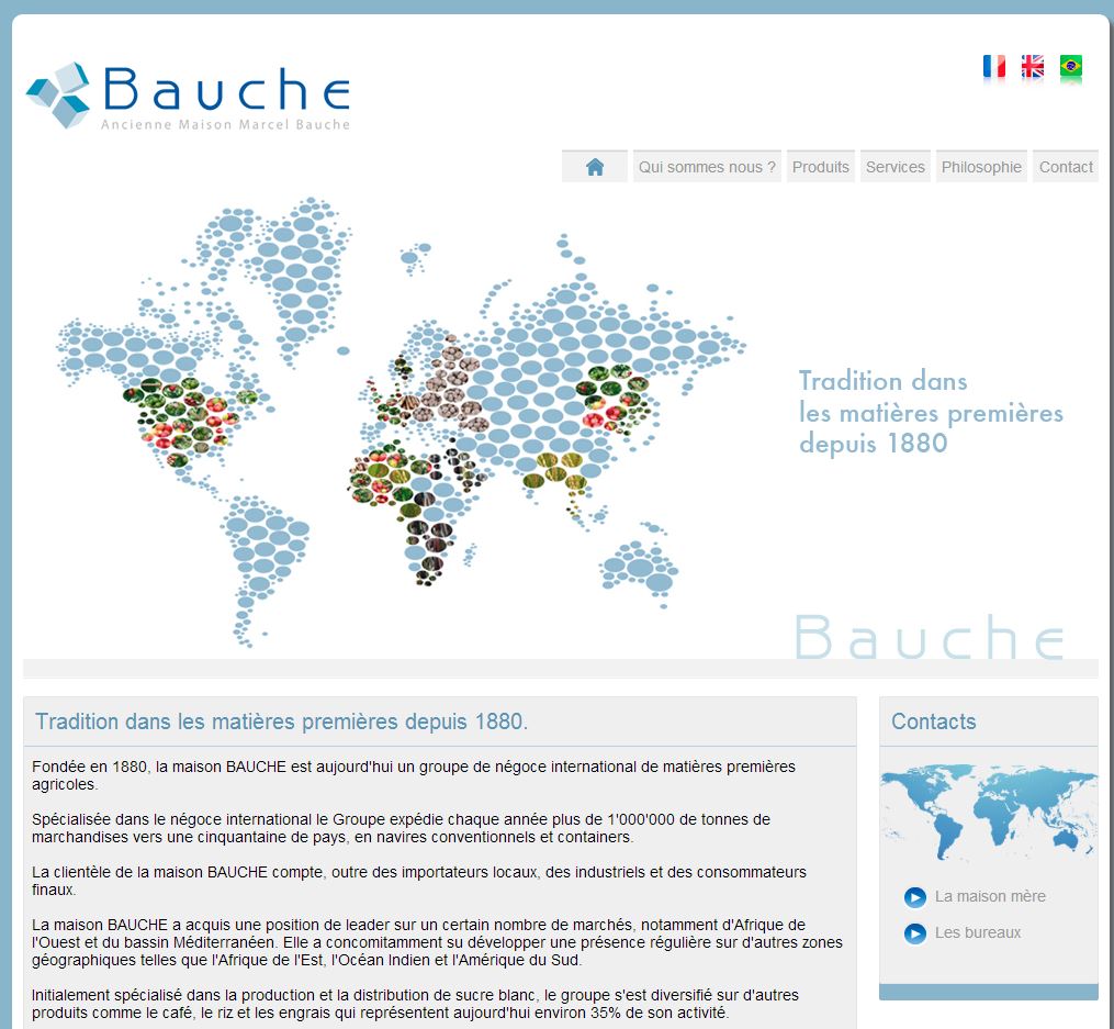 La maison BAUCHE a acquis une position de leader sur un certain nombre de marchés, notamment d’Afrique de l’Ouest et du bassin Méditerranéen. Elle a concomitamment su développer une présence régulière sur d’autres zones géographiques telles que l’Afrique de l’Est, l’Océan Indien et l’Amérique du Sud.