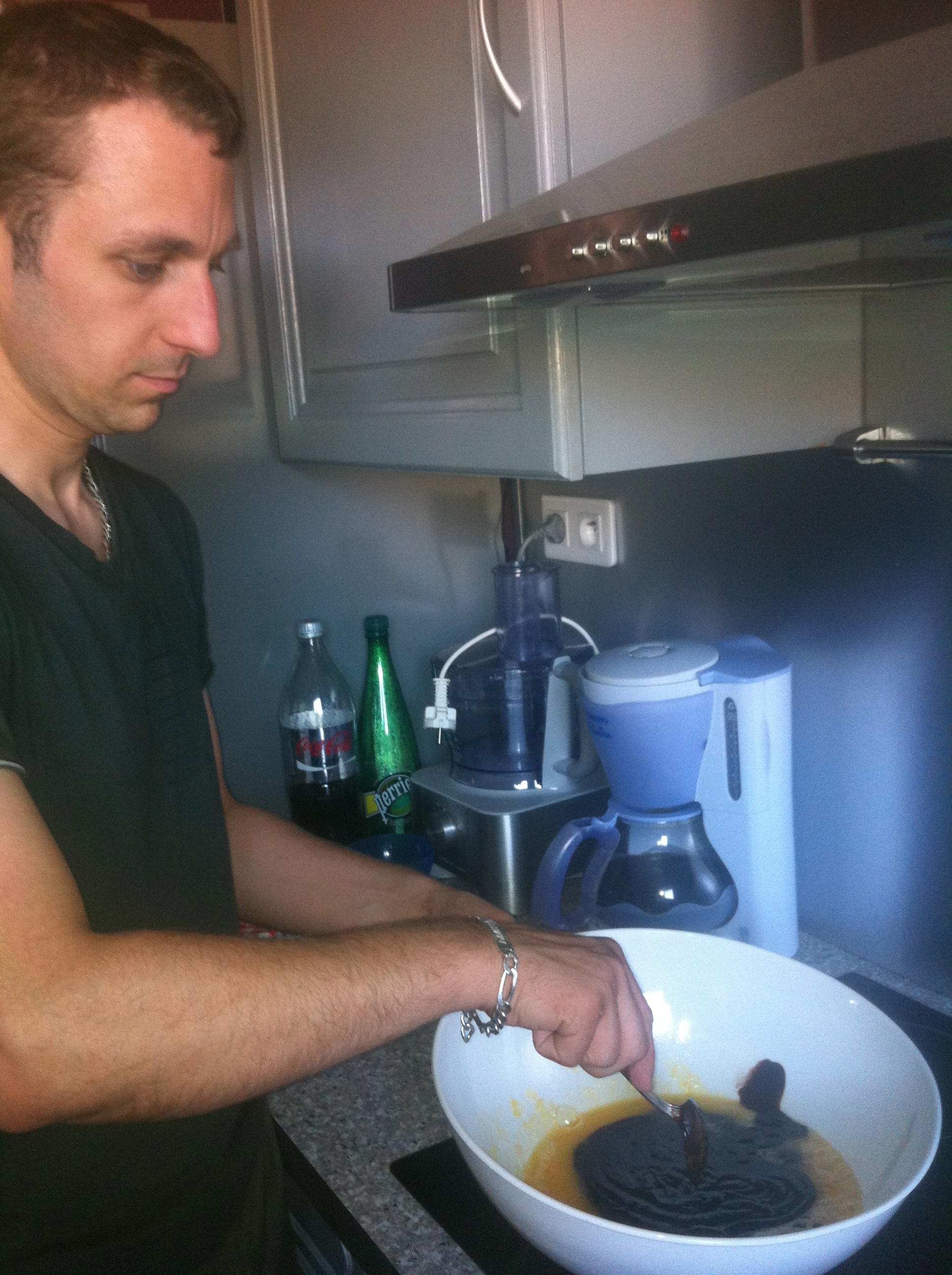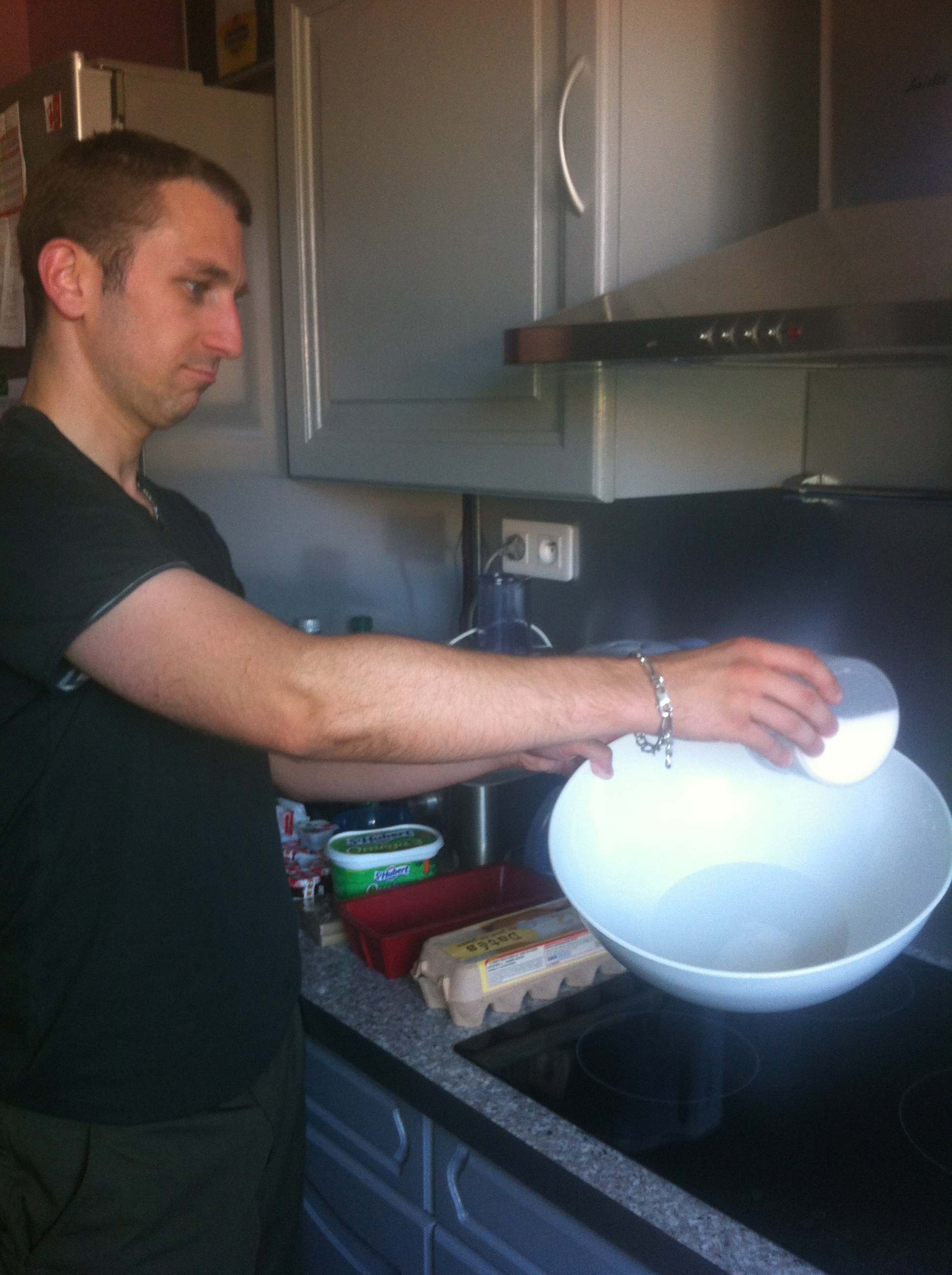 Le verdict : ce fondant au chocolat était un régal ! La preuve en image après ces quelques lignes, on ne vous ment pas ! Mais nous ne pouvons pas nous empêcher de raconter la petite anecdote de la préparation de ce fondant… Dimitri s’est fait accompagner de sa chère et tendre fiancée pour cuisiner ce plat (attention, juste accompagner, sinon le cooking friday aurait été annulé..!). C’est donc avec patience qu’elle lui a expliqué comment casser des oeufs afin d’en récupérer tout le contenu pour le gâteau. Une petite démonstration de la part de sa fiancée, puis c’est à son tour de reproduire l’exploit… Mais avec la douceur tant connue de Dimitri, l’oeuf s’est retrouvé exploser sur le plan de travail, inutilisable pour le gâteau ! Bon, au deuxième essai, ça allait déjà mieux…