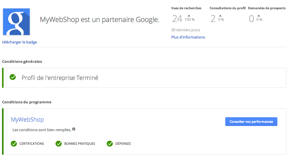 La fin d’année arrive mais le nouveau programme de certification de google est là également. En bonne agence certifiée AdWords, MyWebShop vient donc de migrer sur le nouveau programme « Google Partner » et devinez quoi, nous sommes de bons partenaires ;-)