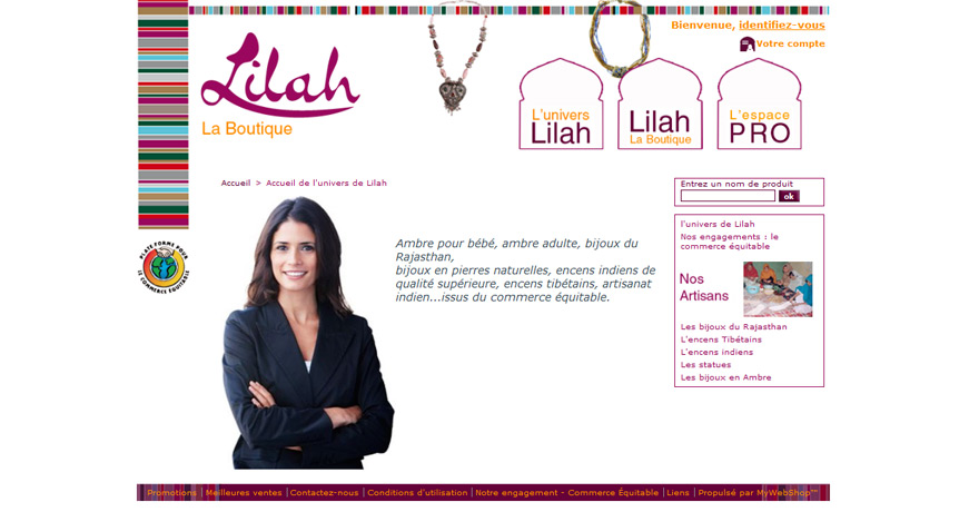 Le commerce équitable propose une alternative efficace pour réduire les inégalités et redonner à l’homme sa place centrale dans les échanges. Lilah rejoint la Plate-Forme (voir encadré plus bas) pour le commerce équitable. (membres fondateurs : Max Havelaar, Biocoop, Artisanat-Sel…)